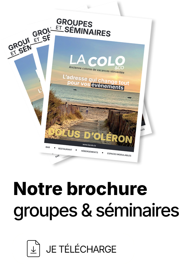 Nous avons eu la chance d’être accueillis et choyés par Colo&Co durant notre séminaire qui s’est déroulé sur la belle – Ile encore sauvage – d’Oléron. Colo&Co est une ancienne colonie de vacances rénovée pour accueillir notamment des groupes (logements, restauration, salon).